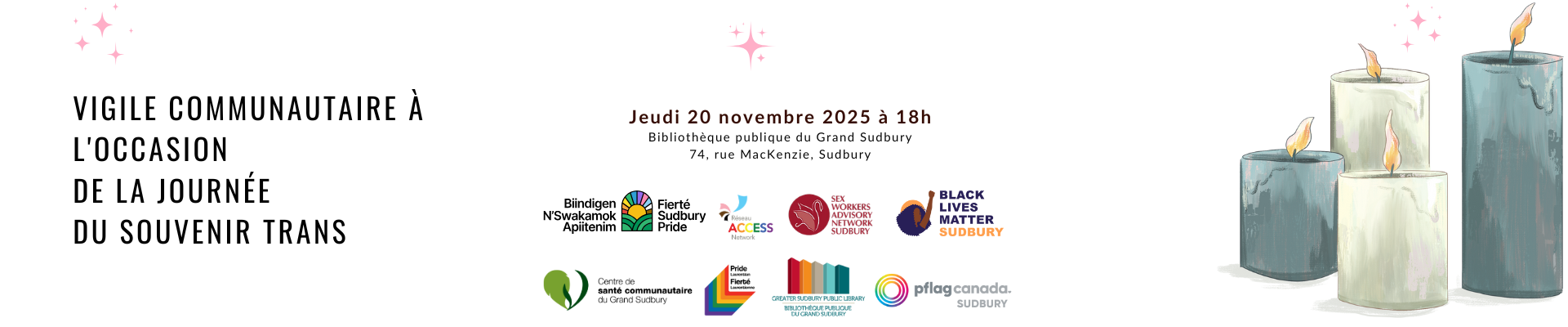 Fierté Sudbury Pride est le premier organisme de défense des droits de la communauté LGBTQ+ à desservir le Nord de l’Ontario. Actifs depuis 1997, nous appuyons, représentons et célébrons la communauté LGBTQ+ du Grand Sudbury. Nous cherchons à célébrer la diversité de notre milieu en offrant une vitrine à la culture LGBTQ+ par le biais d’activités tels que des festivals, des tables rondes et des projets d’engagement communautaire. Nous cherchons à créer des espaces libres de discrimination et de stigmatisation où tous peuvent se sentir chez eux.