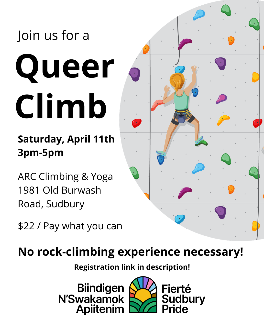 Where: ARC Climbing & Yoga, 1981 Old Burwash Road, Sudbury